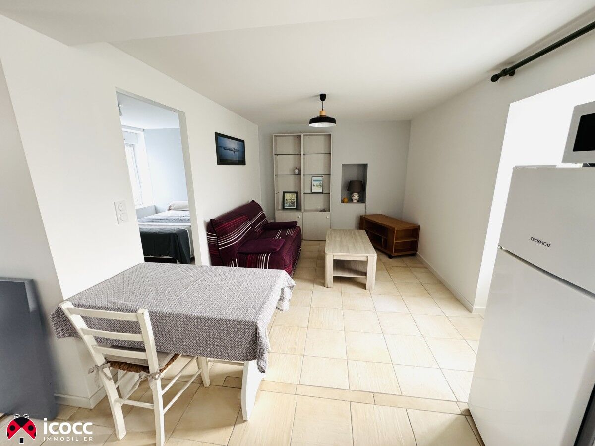 Appartement au rez-de-chaussée, entièrement meublé, de 35 m2 habitables, comprenant séjour avec coin cuisine, une chambre, salle d'eau avec wc. Une dépendance. Ouvertures en double vitrage, chauffage électrique.