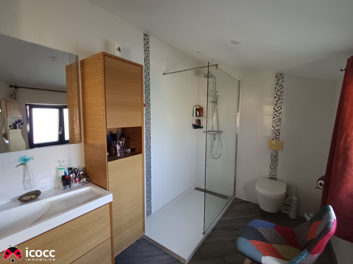 Côté nuit, la maison offre une suite parentale de plain-pied intime et confortable, pensée comme un refuge paisible. La mezzanine accueille deux chambres supplémentaires ainsi qu’une salle de bain, formant un ensemble nuit à la fois intime et harmonieux.